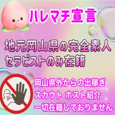 - 当店は独自ルート求人により『岡山県の素人セラピスト』のみ在籍しております💖 いわゆる系列店や振替も一切ありません💖 岡山県外からの出稼ぎや、スカウト及びホストからの紹介女性は一人もいません💖